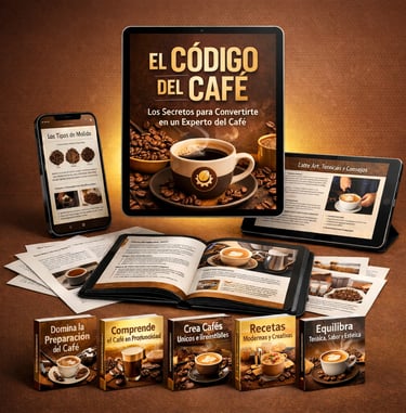 EL CÓDIGO DEL CAFÉ es una guía visual y práctica creada para enseñarte, paso a paso, cómo preparar café de calidad, comprender los métodos, dominar las técnicas y disfrutar cada taza con más seguridad y criterio.