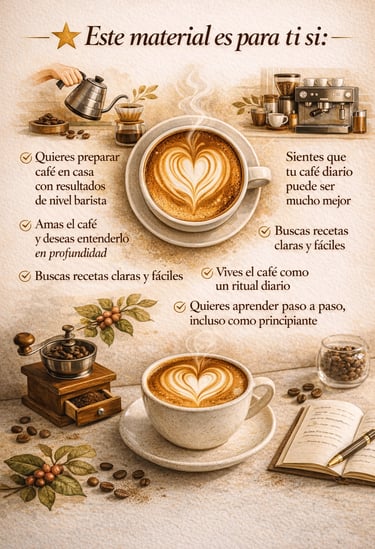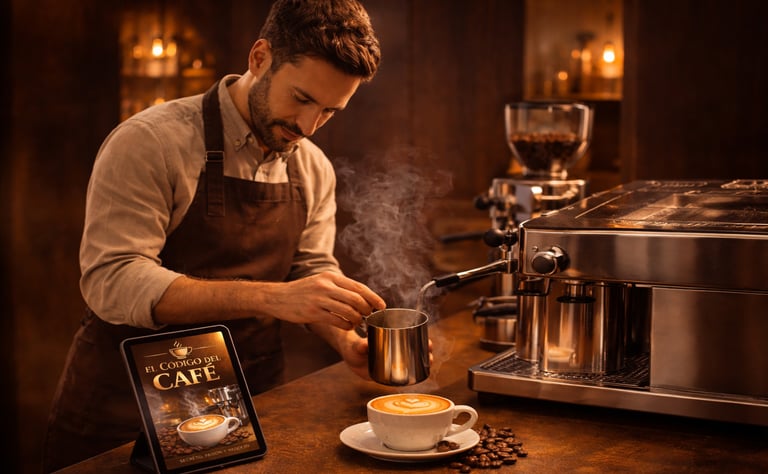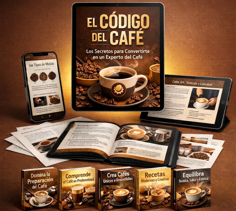 EL CÓDIGO DEL CAFÉ es una guía clara y visual que te lleva paso a paso, ayudándote a comprender, aplicar y dominar el café desde lo básico hasta un nivel más seguro y profesional.