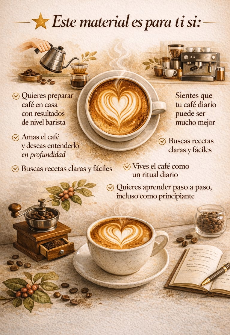 Más de 100 Recetas, técnicas de barista y secretos prácticos para transformar cada taza en una experiencia de cafetería, sin salir de casa.